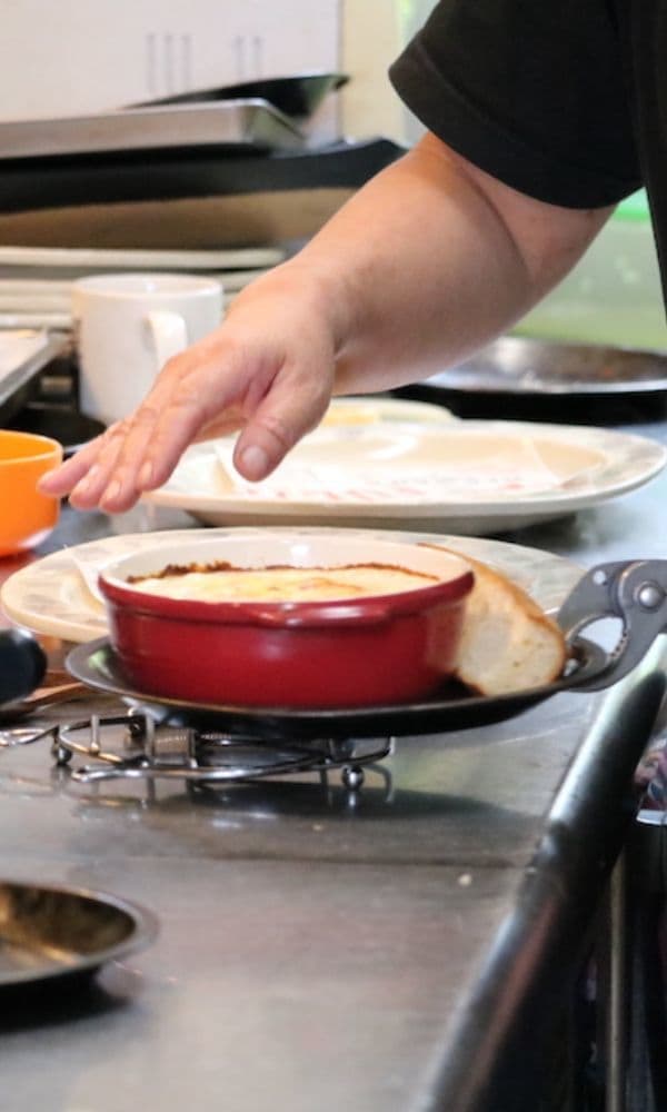 さりょうのハンバーグは、肉の粘りが出てくるまで、しっかりよくこねます。表面を焼いて肉の旨みを閉じ込めてから、オーブンで焼き上げるので、ジューシーでふわふわな仕上がりになります。