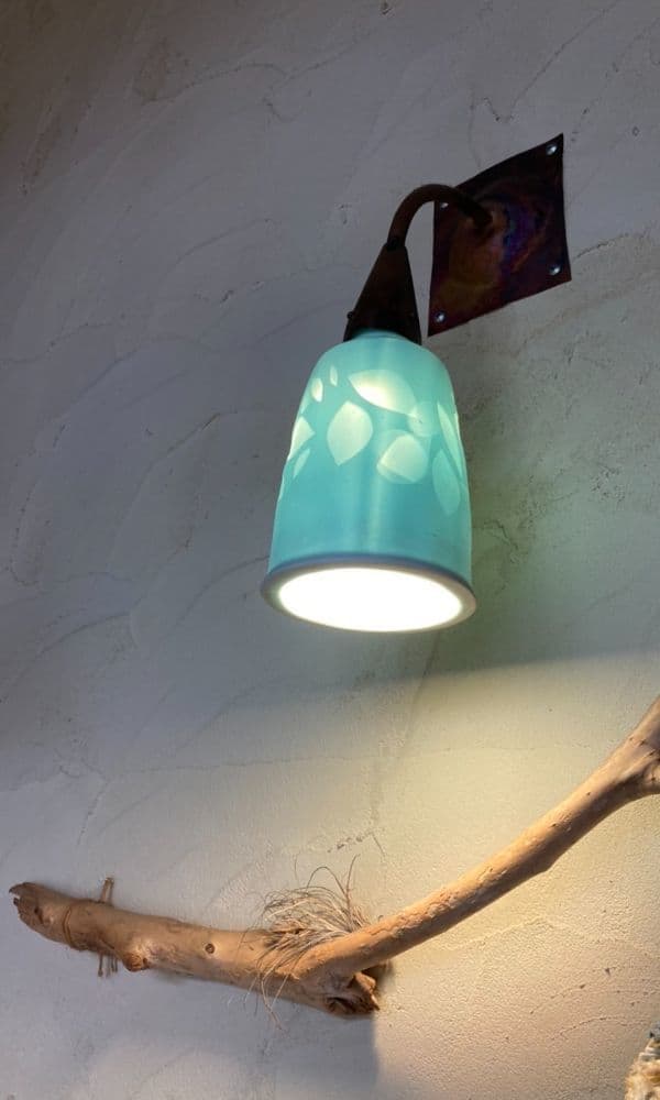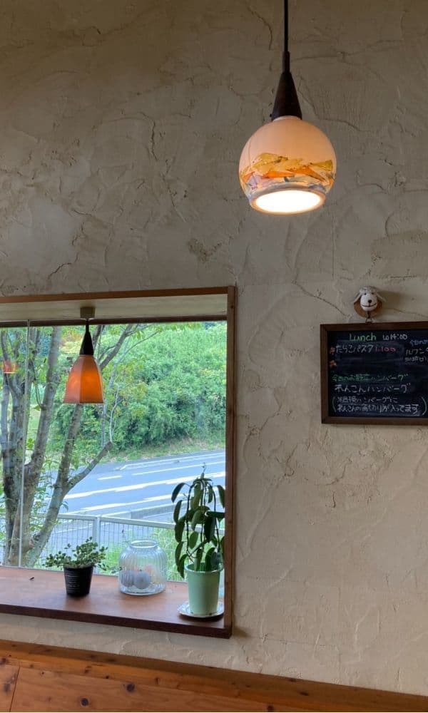 笠間焼のランプシェードや、オーダーで依頼したころんとした丸いフォルムの椅子、オーナー手作りのリースなども販売しております。